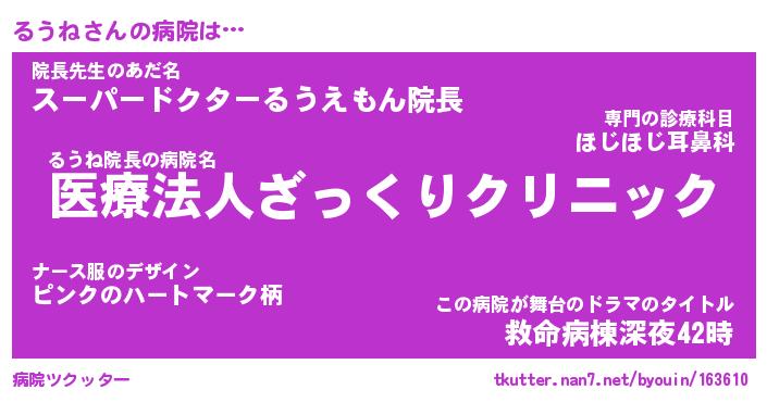 | ヘコむあだ名 | 『るうもー』『つくし』『るう太郎』 |