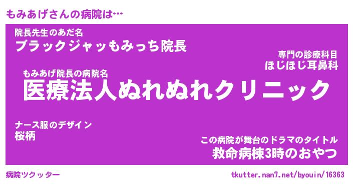 | 2回繰り返すあだ名 | 『もみもみ』『ももみみ』『ぬめぬめ』 |