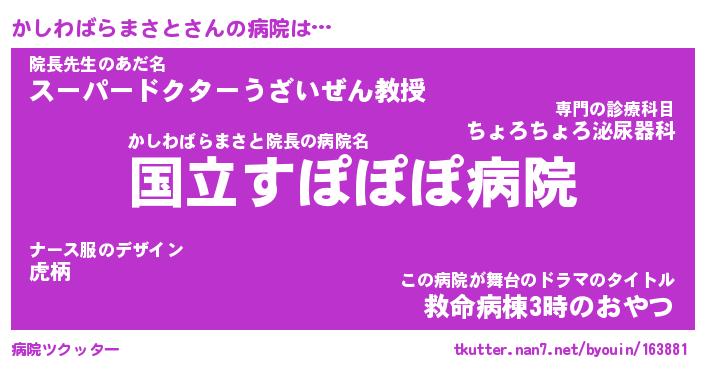 | 伝説のあだ名 | 『伝説のスナイパーかしわばらまさと』 |