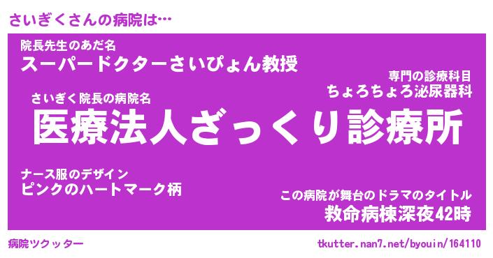 | 意味不明あだ名 | 『ペロリンさいぎく』『永久保存さいぎく』 |