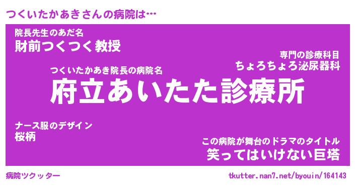 | 肩書あだ名 | 『つくいたかあき御曹司』 |
