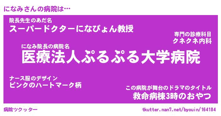 | 恥ずかしいあだ名 | 『プリティーになみ』『になっちょ』 |