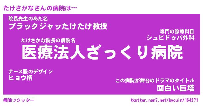 | 肩書あだ名 | 『たけさかな御曹司』『たけさかな大統領』 |