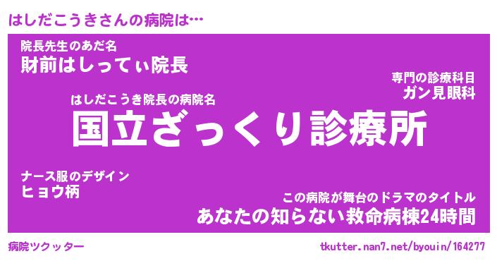 | 肩書あだ名 | 『はしだこうき御曹司』 |