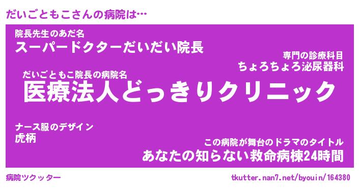 | 胡散臭い通販商品みたいなあだ名 | 『億万長者になれる霊験あらたかなお札…その名も「だいごともこ」』 |