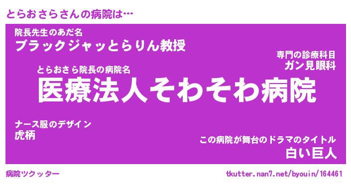 | 胡散臭い通販商品みたいなあだ名 | 『億万長者になれるブレスレット…その名も「とらおさら」』 |