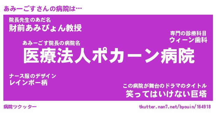 | ツイッター | あみーごすさんのツイッターID『namakemono_idle』 |