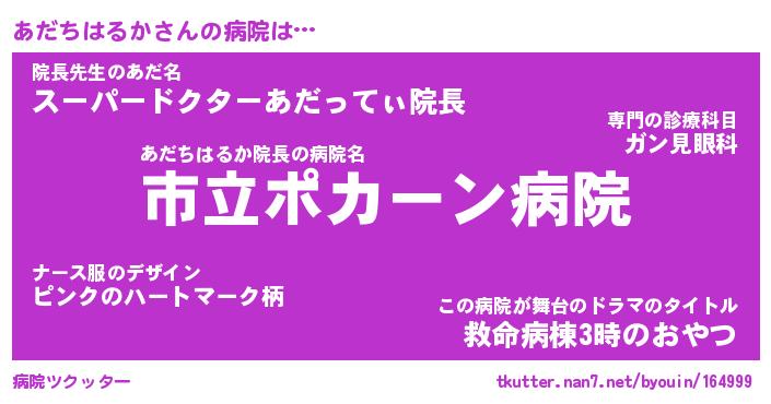 | ポケモン風あだ名 | 『アダチュウ』『アダチダネ』 |