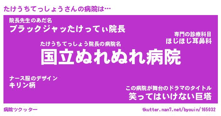 | 伝説のあだ名 | 『伝説のスナイパーたけうちてっしょう』 |