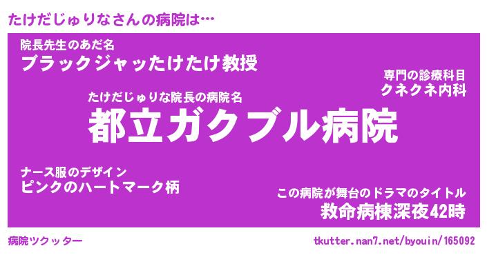 | ヘコむあだ名 | 『たけにゅー』『豆乳』『たけっ子』 |