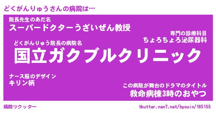 | ヒーロー風カッコイイあだ名 | 『スーパードクガンリュウ』 |
