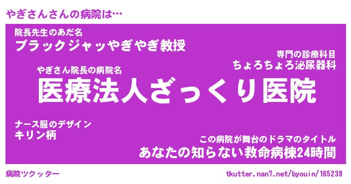 | ヘコむあだ名 | 『やぎもー』『なまこ酢』『やぎを』 |