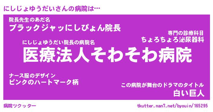 | 胡散臭い通販商品みたいなあだ名 | 『億万長者になれるブレスレット…その名も「にしじょゆうだい」』 |