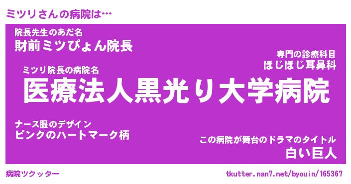 | ヒーロー風カッコイイあだ名 | 『スーパーミツリ』『ウルトラミツリマン』 |