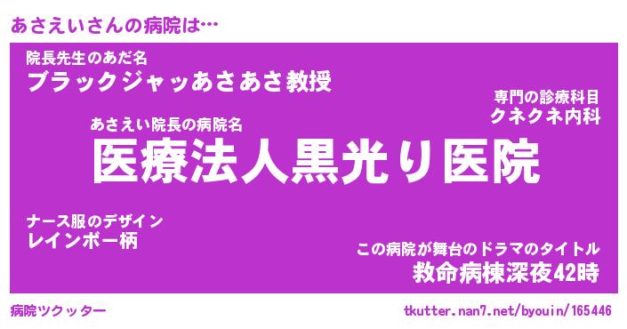 | 欧米人風あだ名 | 『マイケルあさえい』『ウサインあさえい』 |