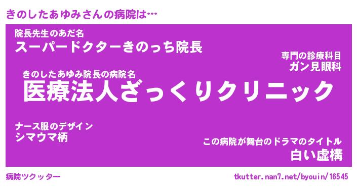 | 伝説のあだ名 | 『封印されしスナイパーきのしたあゆみ』 |