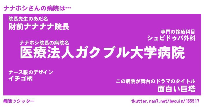 | ピコ太郎風あだ名 | 『ナコ史郎』『ピナ太郎』『ナナ四郎』 |
