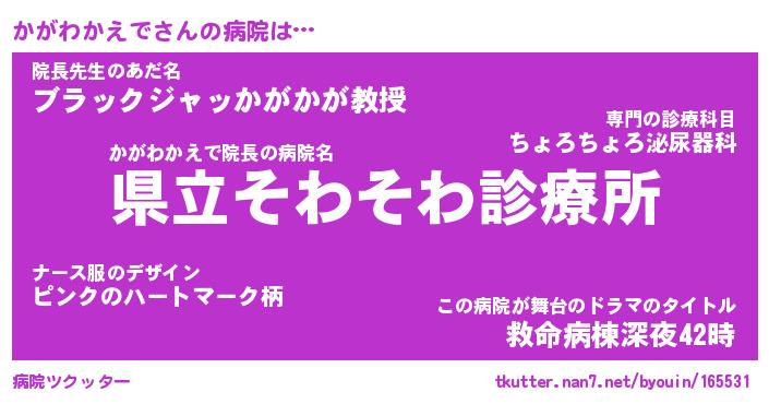 | 2回繰り返すあだ名 | 『かがかが』『かかがが』『ぎざぎざ』 |
