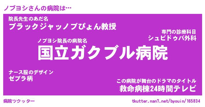 | ピコ太郎風あだ名 | 『ノコ史郎』『ピノ史郎』『ノブ三郎』 |
