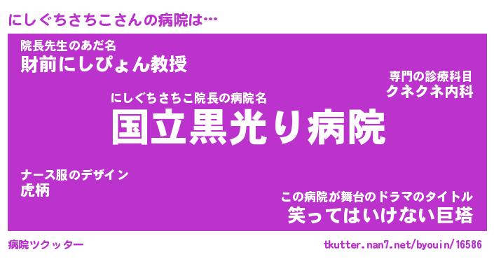 | 恥ずかしいあだ名 | 『プリティーにしぐちさちこ』『にしちん』 |