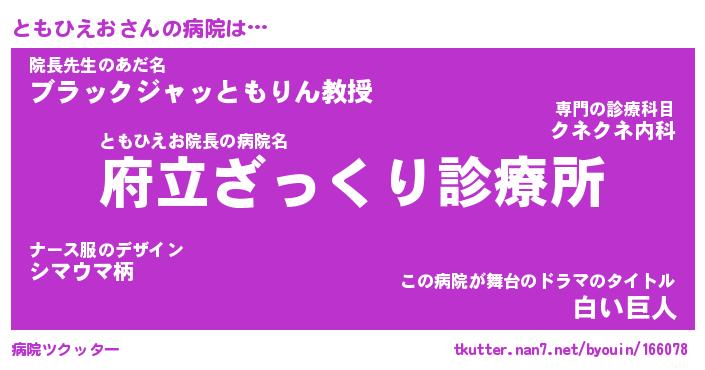 | ヘコむあだ名 | 『とももー』『なまこ酢』『ともお』 |