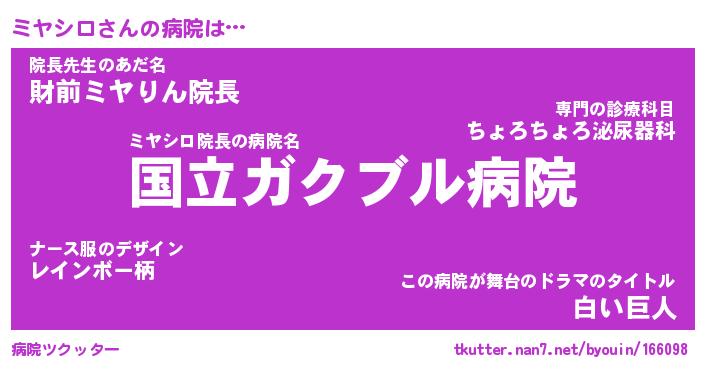 | ファンタジー風あだ名 | 『ミヤフェル』『エターナルミヤシロー』 |