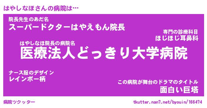 | ピコ太郎風あだ名 | 『ハコ八郎』『ピハ太郎』『ハヤ五郎』 |