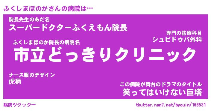 | 伝説のあだ名 | 『伝説のスナイパーふくしまほのか』 |