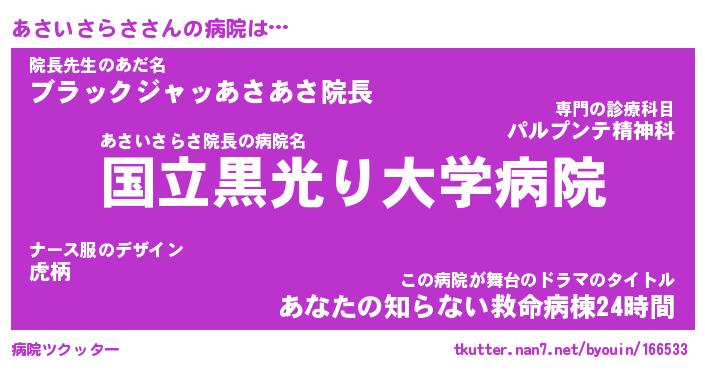 | ヒーロー風カッコイイあだ名 | 『スーパーアサイサラサ』『天弓騎士アサ』 |