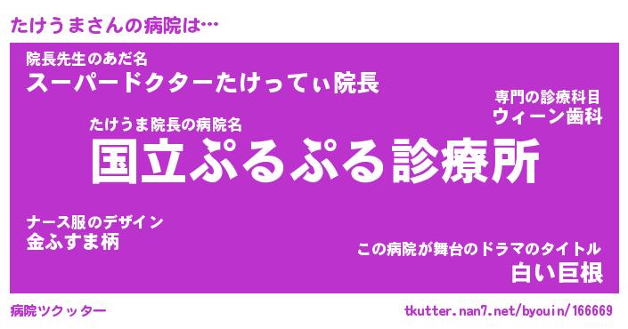 | ファンタジー風あだ名 | 『タケフェル』『エターナルタケウマー』 |