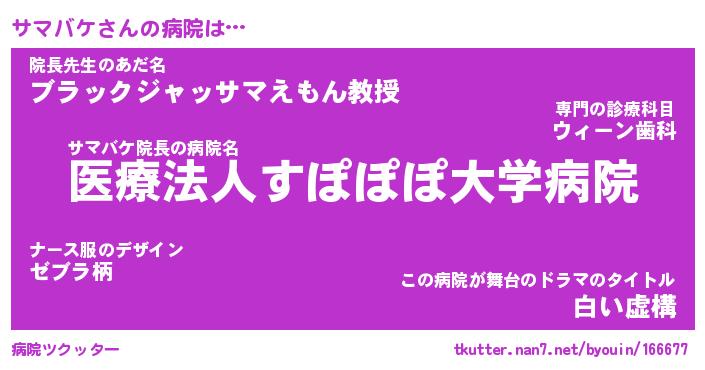 | 2回繰り返すあだ名 | 『サマサマ』『ササママ』『ぬらぬら』 |
