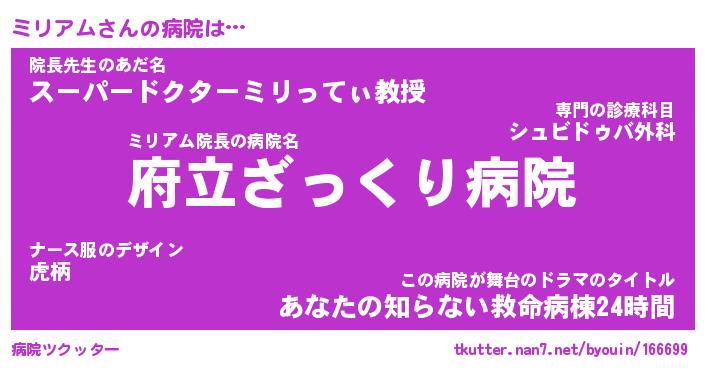 | 意味不明あだ名 | 『ペロリンミリアム』『永久保存ミリアム』 |