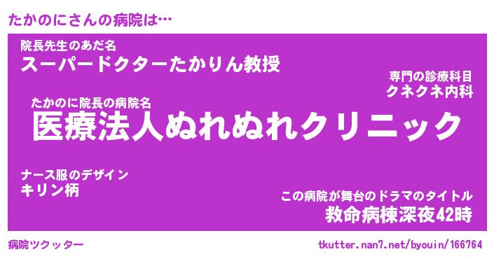 | 意味不明あだ名 | 『ペロリンたかのに』『永久保存たかのに』 |