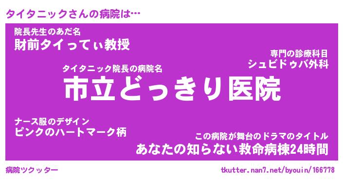 | 男性向けラノベタイトル風あだ名 | 『タイタニックの憂鬱』 |