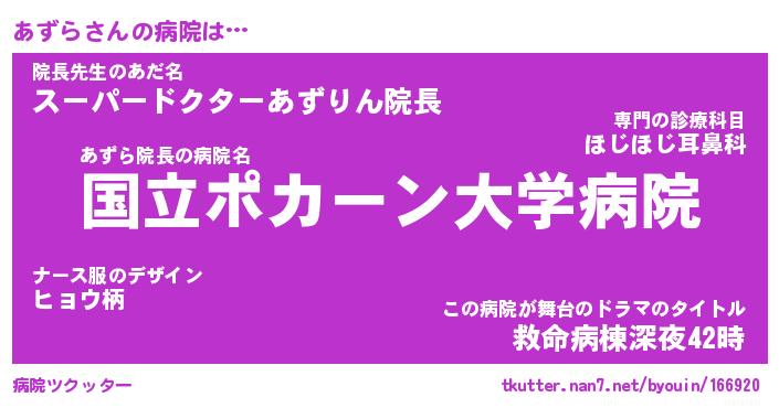 | ヒーロー風カッコイイあだ名 | 『スーパーアズラ』『ウルトラあずらマン』 |