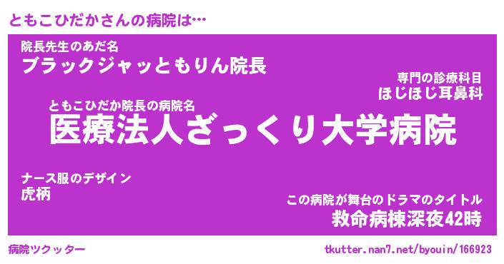 | ヘコむあだ名 | 『ともっふぃ~』『なまこ酢』 |