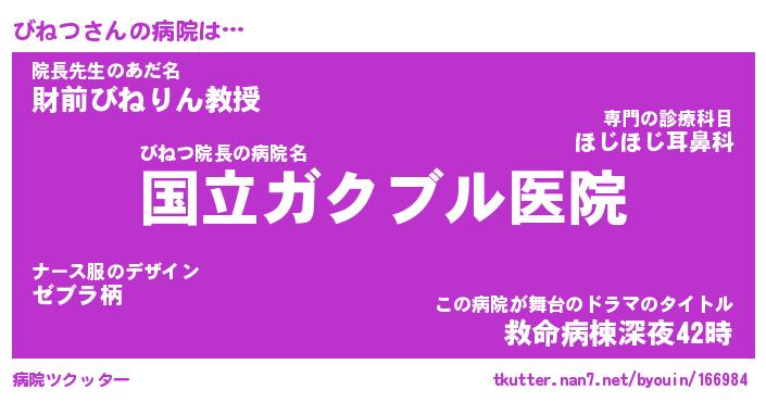 | ヘコむあだ名 | 『びねにゅー』『牛乳』『びねっぺ』 |