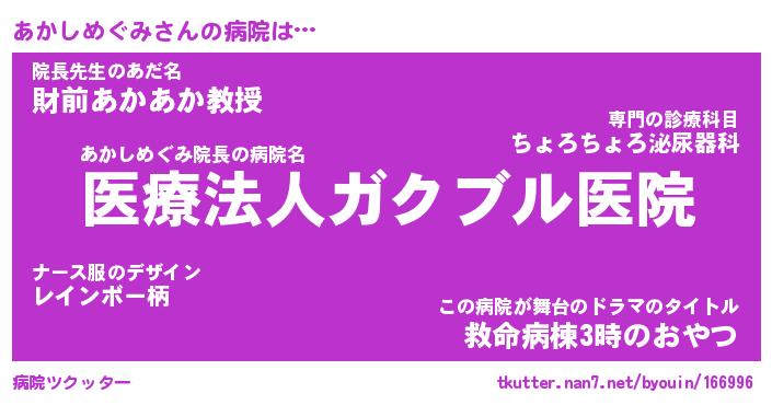 | 肩書あだ名 | 『あかしめぐみ店長』『あかしめぐみ班長』 |