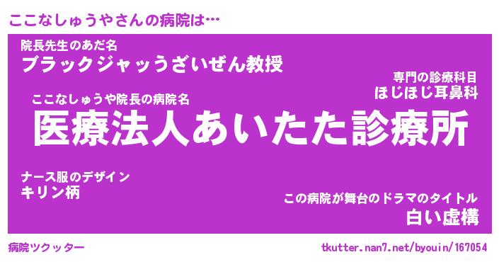 | 伝説のあだ名 | 『封印されしスナイパーここなしゅうや』 |
