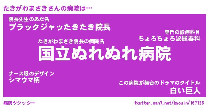 | ヘコむあだ名 | 『たきもー』『酢こんぶ』『たきっ子』 |