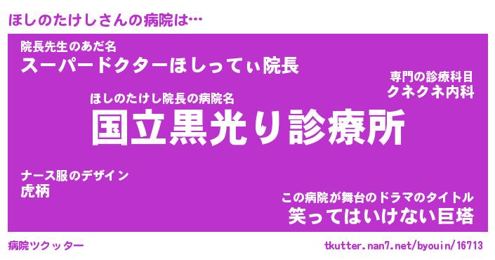 | ヒーロー風カッコイイあだ名 | 『スーパーホシノタケシ』『銀牙騎士ホシ』 |