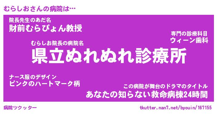 | 意味不明あだ名 | 『ペロリンむらしお』『永久保存むらしお』 |