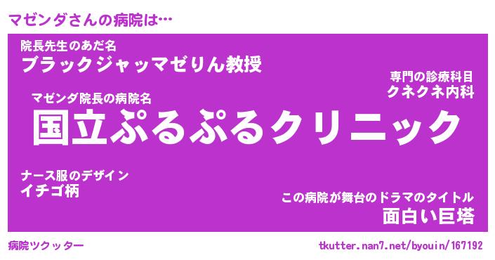 | 意味不明あだ名 | 『ペロリンマゼンダ』『永久保存マゼンダ』 |