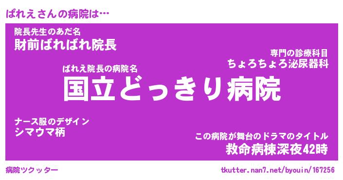 | 2回繰り返すあだ名 | 『ばればれ』『ばばれれ』『けらけら』 |