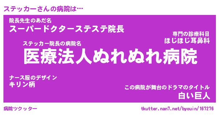 | ヘコむあだ名 | 『ステもー』『つくし』『ステを』 |