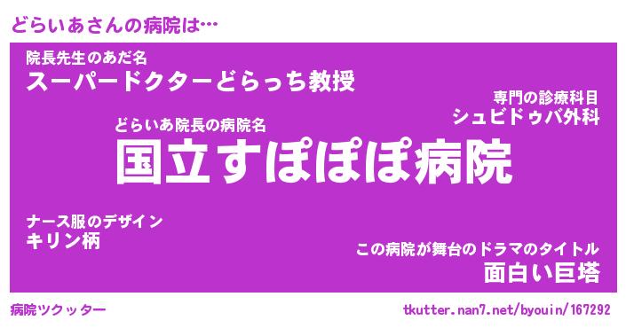 | ヘコむあだ名 | 『どらもー』『つくし』『どら太郎』 |