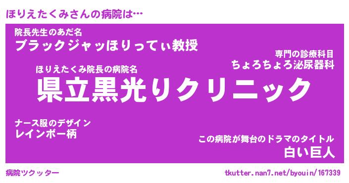 | ヘコむあだ名 | 『ほりにー』『豆乳』『ほりっ子』 |