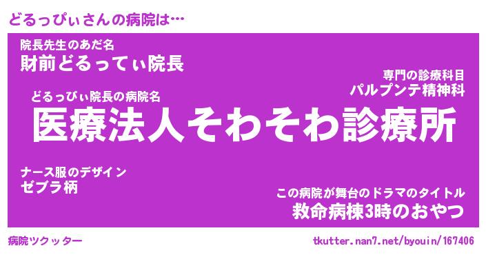 | 胡散臭い通販商品みたいなあだ名 | 『億万長者になれるブレスレット…その名も「どるっぴぃ」』 |