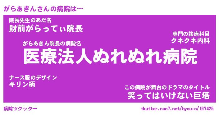 | ヘコむあだ名 | 『がらもー』『酢こんぶ』『がらっ子』 |