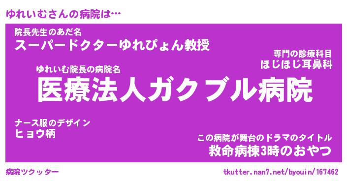 | ヘコむあだ名 | 『ゆれにゅー』『レバニラ』 |